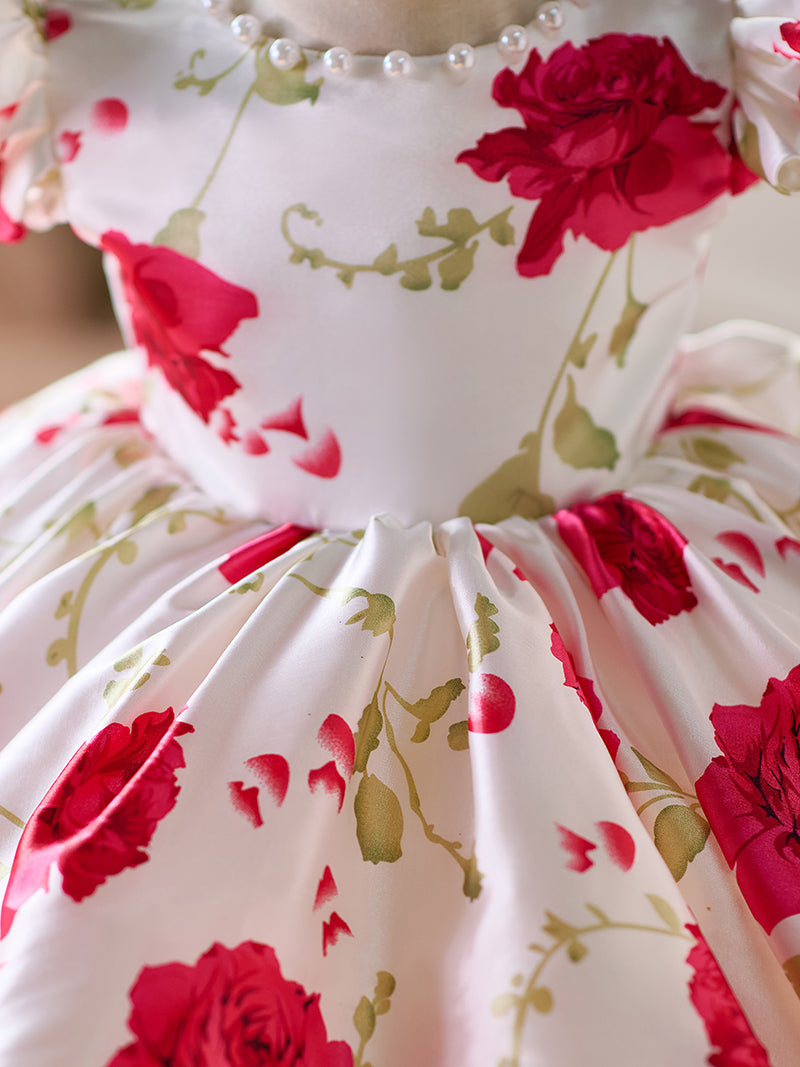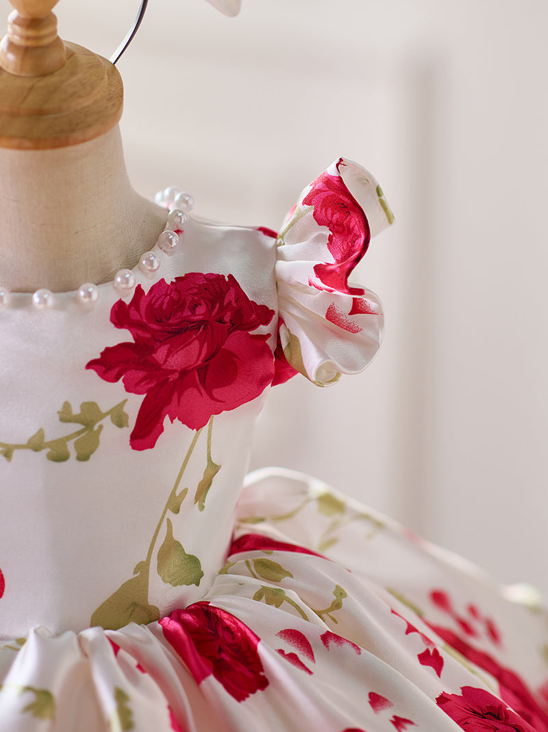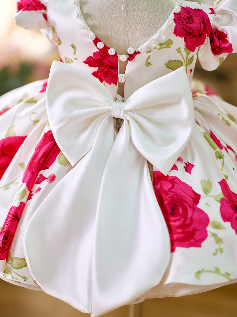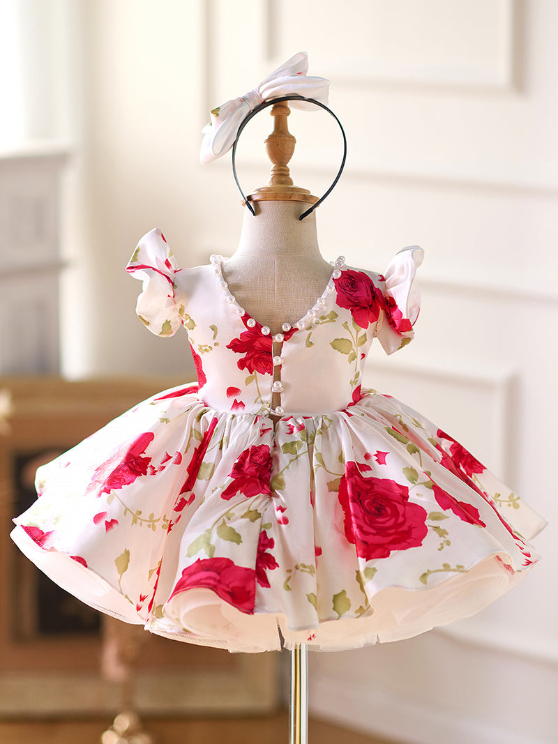 Red Baby Puffy Sleeve Knee Length Baby Girl Dress J051