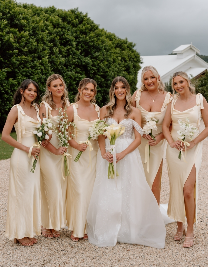 Elegant A Line Spaghetti Strap Yellow Satin Evening Dress Bridesmaid Dress with Slit SH2696