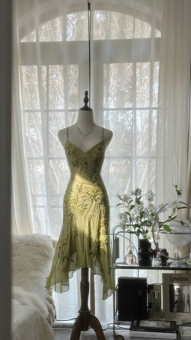 Gentle Mermaid Spaghetti Strap Beaded Flower Green Chiffon Party Dress Homecoming Dress SH2958