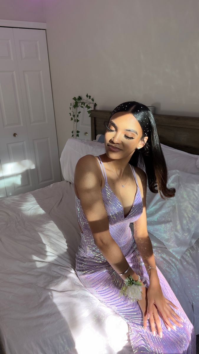 Sparkling Purple Straps V Neck Sequin Floor Length Prom Dress Bridesmaid Dress TP2360