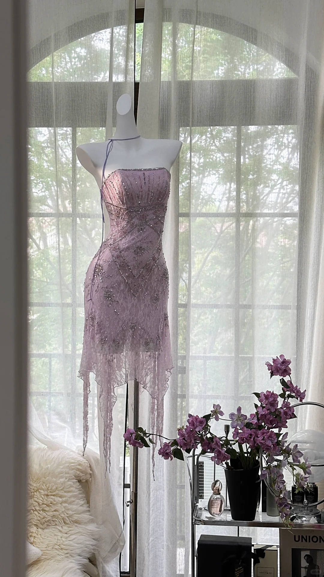 Stunning A Line Strapless Purple Rhinestone Lace Short Homecoming Dress Birthday Dress SH2942