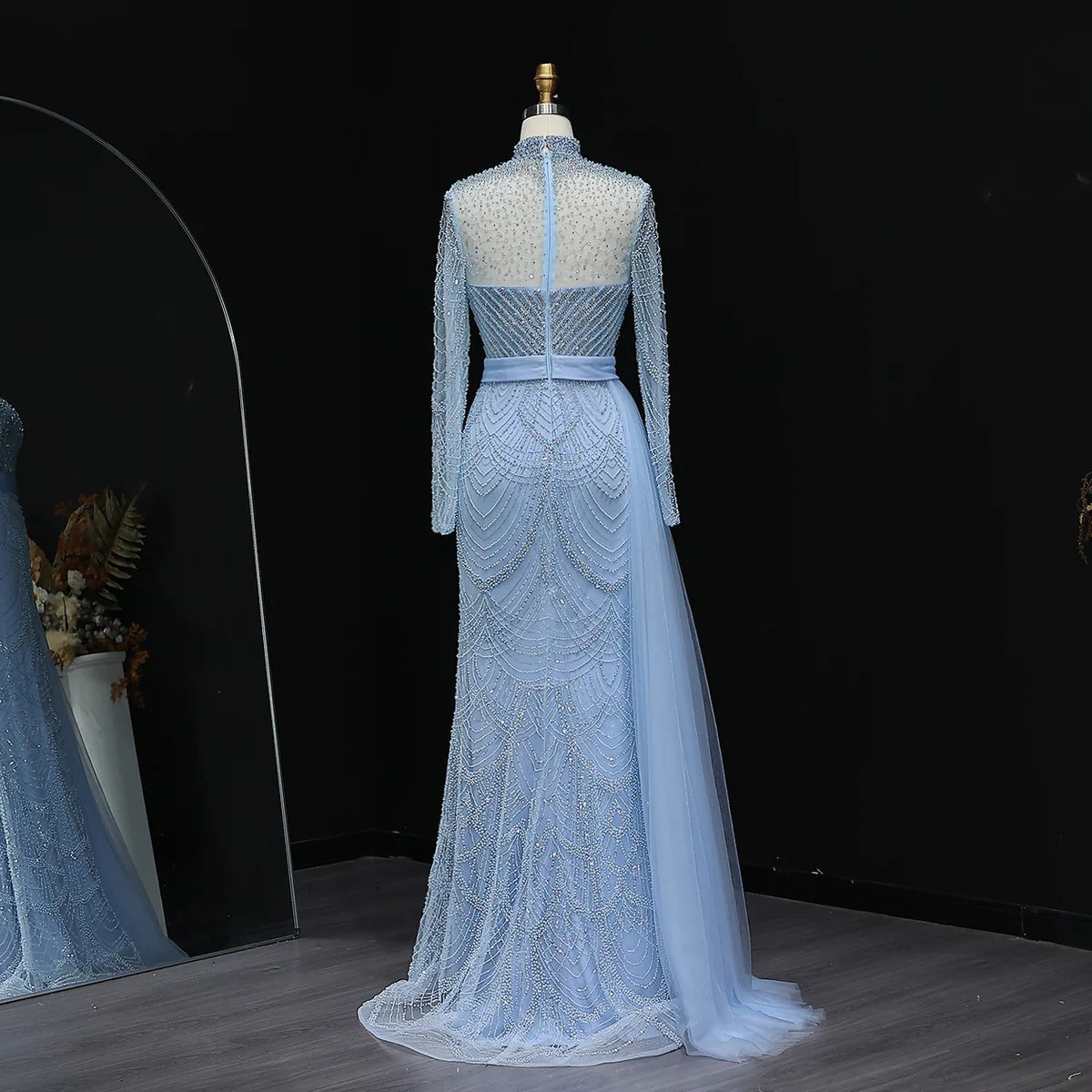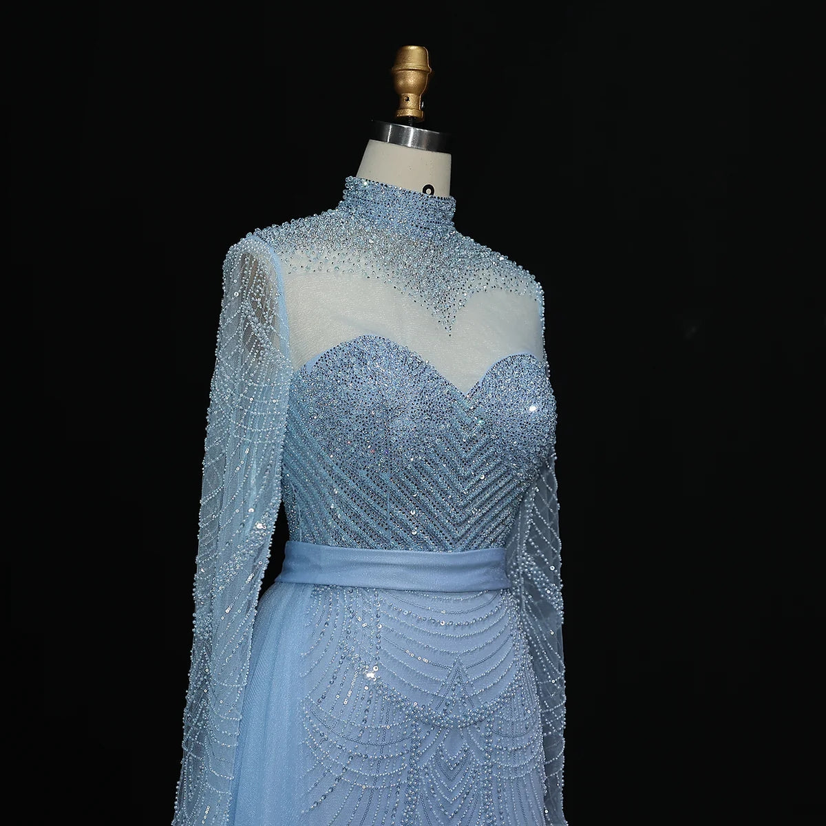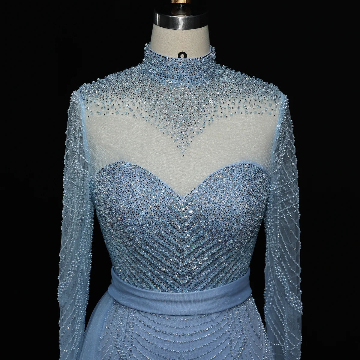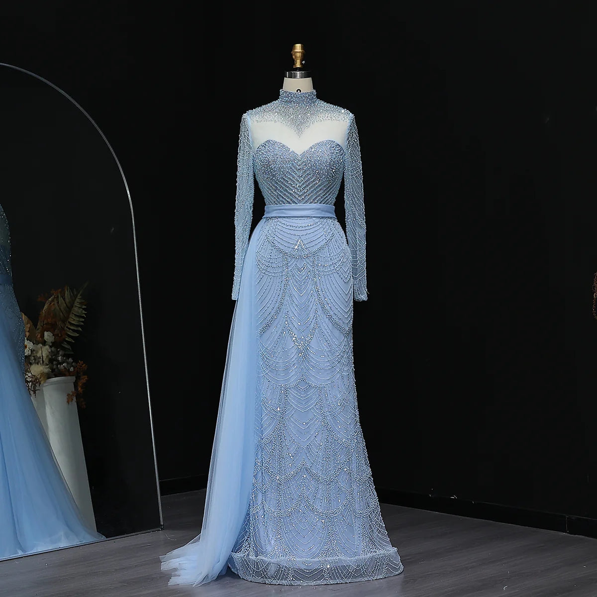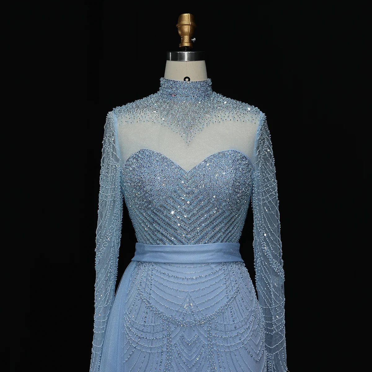 Stunning Brown Long Sleeve High Neck Evening Dress SS015