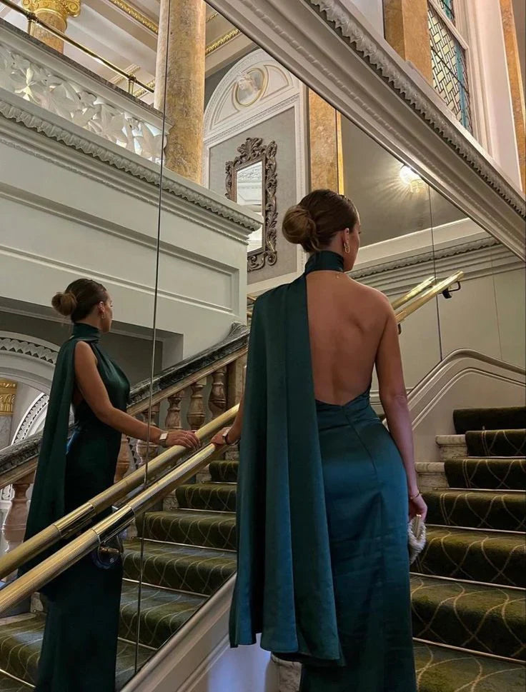 Xuewuba DressClassy Sheath High Neckline Satin Long Party Dress Green Prom Dresses